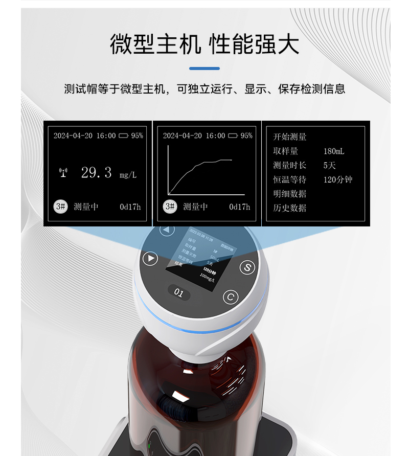 2、量程0-4000mg/L,支持8種量程取樣選擇,檢測濃度直讀,無需換算直接顯示BOD值,硬件升級低量程測值更準;